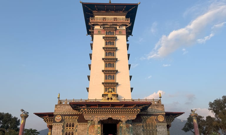 The construction started in 2011 and completed in 2017. The replica tower of Qinghai province in China is located at Rigzinling, about 700 meters of the Thimphu- Phuentsholing highway road confluence of the road leading to Wangdi Gatshel primary school under Chukha Dzongkhag, Bhutan. Sangye Migyurling Lhakhang, also known as Milarepa Lhakhang, is a place steeped in spirituality and rich cultural heritage. These 9 storied revered temples are dedicated to the legendary Buddhist figure, Milarepa (1052-1135).
