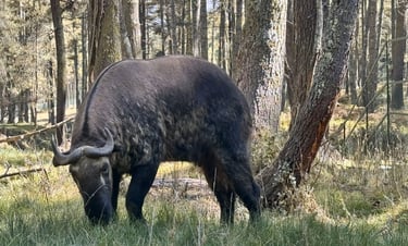 The Motithang Takin Preserve is a sanctuary dedicated to Bhutan’s unique national animal, the takin. This charming reserve, set amidst a serene, forested area, offers visitors a rare chance to see these fascinating creatures up close and learn about Bhutan's efforts to protect its wildlife.Visiting the preserve is a delightful experience. The trails winding through the forest offer a peaceful walk, with occasional glimpses of the takins and other animals grazing or lounging in their natural habitat. The reserve is also home to other wildlife such as sambar deer and muntjac, adding to the richness of the experience.